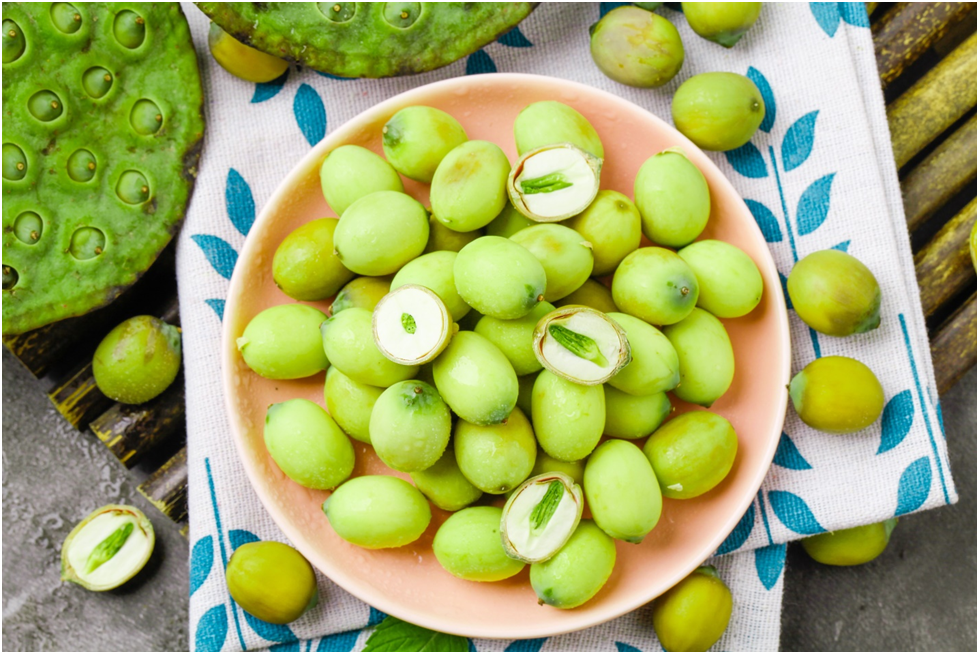 Tâm sen – là cây mầm có màu xanh nằm trong hạt sen. Cây sen – Nelumbo nucifera, họ Sen – Nelumbonaceae.